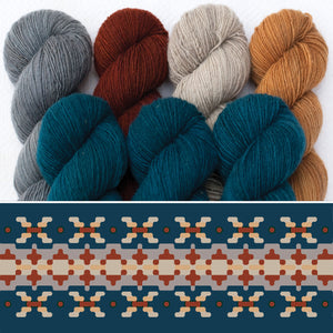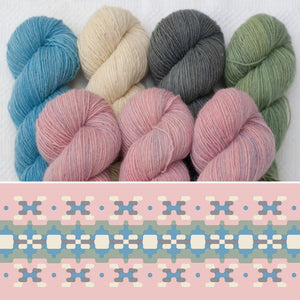 Chaque ensemble comprend 7 écheveaux complets, suffisamment de laine pour réaliser n'importe laquelle des cinq tailles. Si vous ne trouvez pas exactement ce que vous cherchez, vous pouvez commander la laine Filigree de votre choix pour créer votre propre ensemble !
