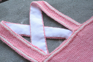 Stitch marker, yarn needle, ½ (¾, ¾, 1) yd of 1" twill tape or grosgrain ribbon, sewing needle and thread